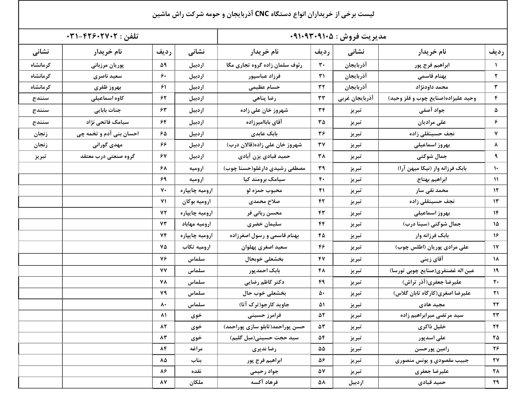 لیست مشتریان